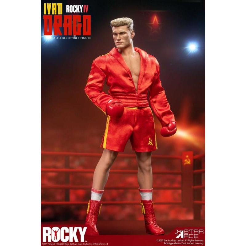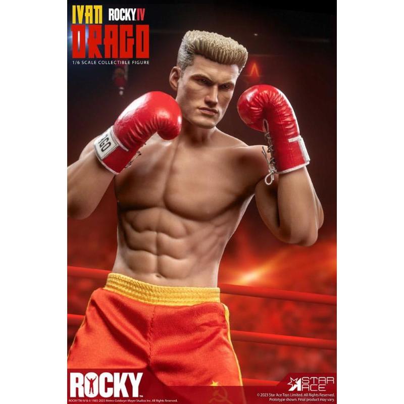 Star Ace presenta l'eccezionale figura in scala 1/6 di Ivan Drago da "Rocky IV" nella versione Deluxe. Questa statuetta cattura perfettamente l'intensità e la potenza del pugile sovietico che affronta Rocky in uno degli incontri più pericolosi e emozionanti della sua carriera.
