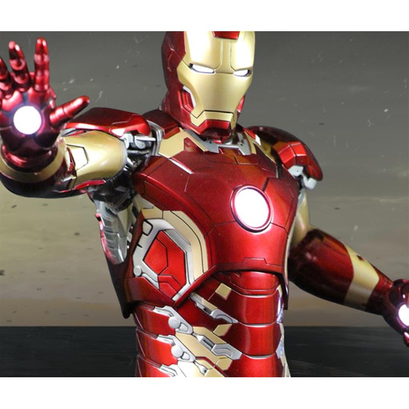 Uno degli Avengers più amati così come apparso nel film "Age of Ultron", nella sua armatura Mark 43. Costruita in fibra di vetro la statua è in scala 1 a 4 e alta circa 53 cm, la statua poggia su una bella base "Stark Industries" illuminata a LED. Anche l’armatura si illumina grazie ai LED inseriti nelle mani, nel volto, sul petto e sulle gambe.