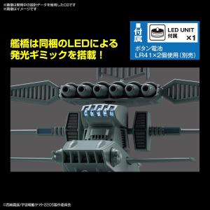 Si aggiunge alla famiglia Bandai la nave madre di rifornimento Asuka. L’ala destra della corazzata spaziale Yamato che appare in " La corazzata spaziale Yamato 2205 Nuova Partenza" è in PVC ed è in scala 1/1000! Base espositiva dedicata inclusa e include anche i seguenti accessori: