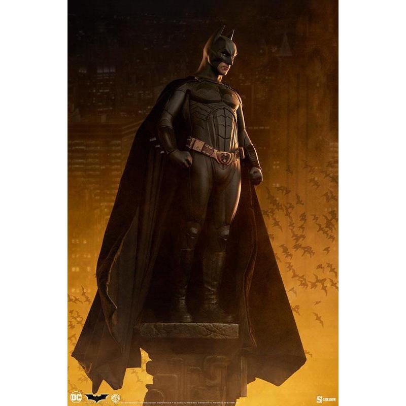 Ispirata alla svolta dell'attore Christian Bale nei panni dell'iconico supereroe nel film Batman Begins (2005), questa statua cattura lo stile caratteristico del suo costume unico e la sua memorabile presenza sullo schermo. La figura di Batman Premium Format è alta 25,75 pollici su una base larga 9 pollici ispirata a Narrows, il fatiscente quartiere di Gotham pieno di criminalità. Incombente sopra l'infrastruttura in decomposizione della sua città, Batman guarda fuori con uno sguardo severo sotto il suo cappuccio alla ricerca di malviventi criminali da fermare nel perseguimento della giustizia.
