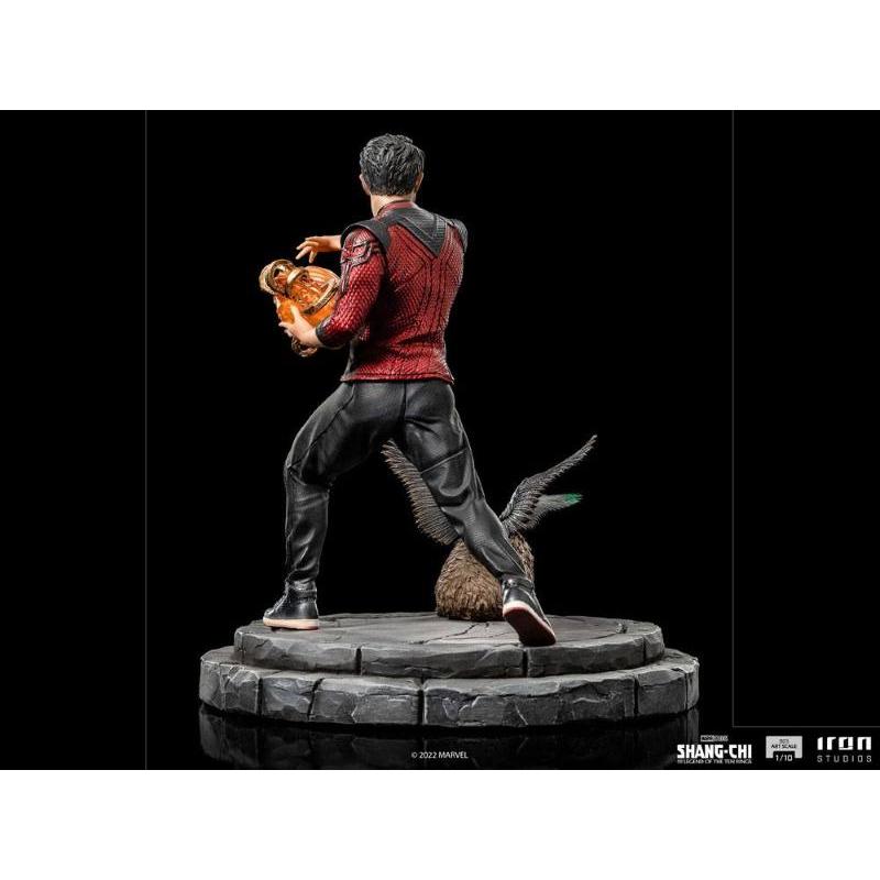 All'interno del Multiverso, nel villaggio di Ta Lo, popolato da animali della mitologia cinese e accessibile solo attraverso un portale sulla Terra, il formidabile giovane artista marziale si concentra, calmo e sicuro di sé, manipolando i cosiddetti "Dieci Anelli", un insieme composto da dieci anelli metallici di origine antica e sconosciuta, che conferiscono al loro utilizzatore poteri divini e mistici. Accanto alla gradevole creatura chiamata Morris, un essere peloso alato originario di Ta Lo, della razza nota come Dijang, catturato dal padre in passato e adottato come animale domestico dai suoi alleati, il coraggioso guerriero con il suo nuovo costume rosso e nero si prepara al suo più grande duello, affrontando il potente padre e la temibile razza di creature chiamate Mangiatori di Anime. Iron Studios è orgogliosa di presentare la statua di un altro leggendario eroe del MCU, "Shang-Chi & Morris BDS - Shang-Chi - Art Scale 1/10", uno dei più grandi combattenti dell'universo Marvel accanto al piccolo animale mistico, ispirato al fortunato adattamento cinematografico di Marvel Studios. Aggiungi questa straordinaria statua alla tua collezione e immergiti nell'affascinante mondo di Shang-Chi!